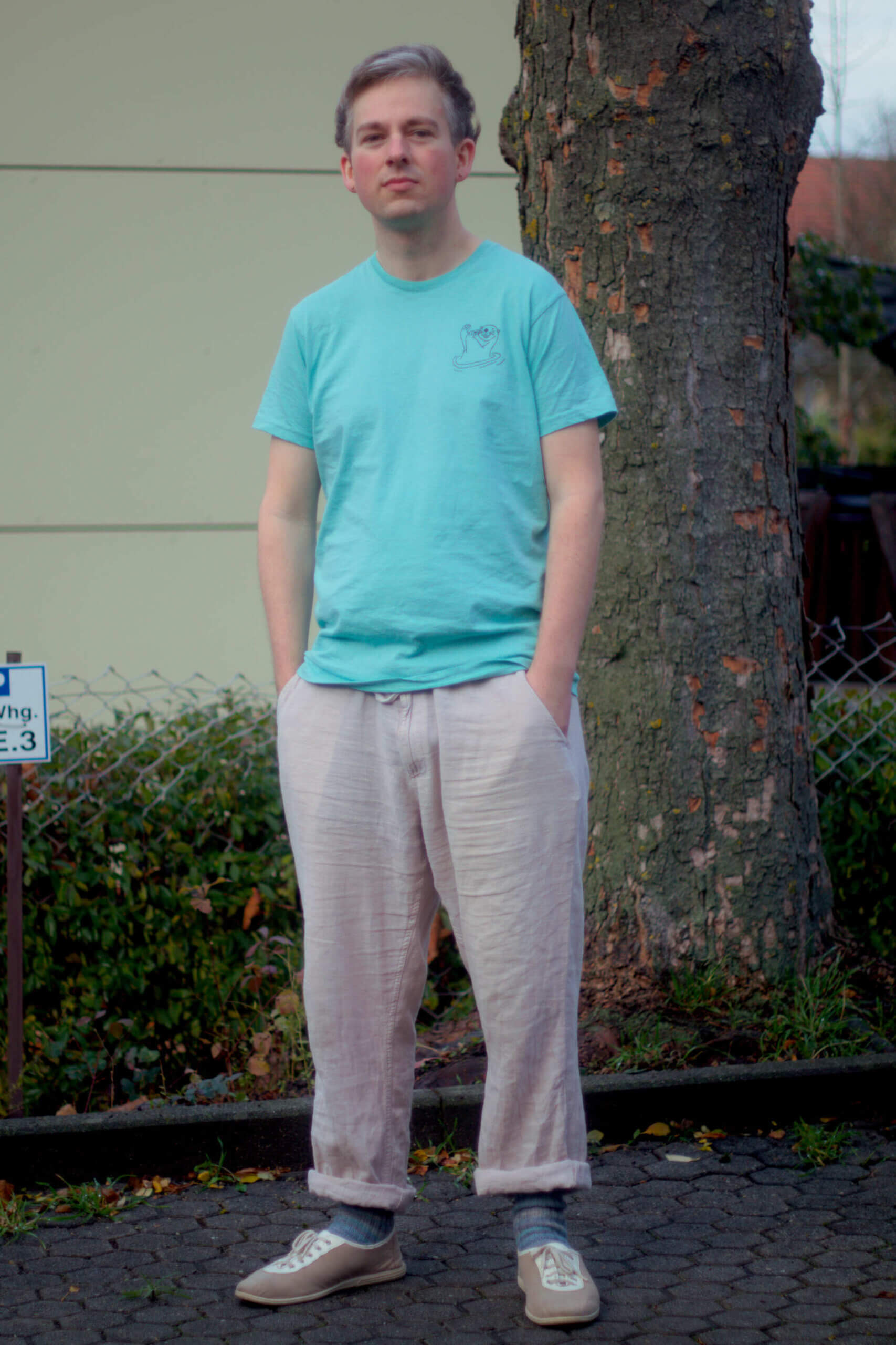 Simmon ist 1,75m groß und trägt Größe M
